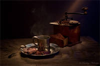 Чому мене спала на думку саме така тема (адже мій улюблений колір - зелененький, і якби я вибрала в цьому місяці саме зелений колір ... асоціювався б листопад з тугою зеленої!))) Отже, вирішено, якщо листопад, цей останній місяць осені, місяць затишшя перед веселими святами, буває сумним і невеселим, якимось сонним і непривітним, то ми його ... обдуримо! - Дістанемо з полиці полотняний мішечок пахучих зерняток, подрібнимо їх і заваримо ароматний густий напій чарівного "зілля" від туги й смутку. А щоб чари підсилити, подамо до гарячої філіжанці кави кілька шматочків смачного блискучого шоколаду! Увеличить